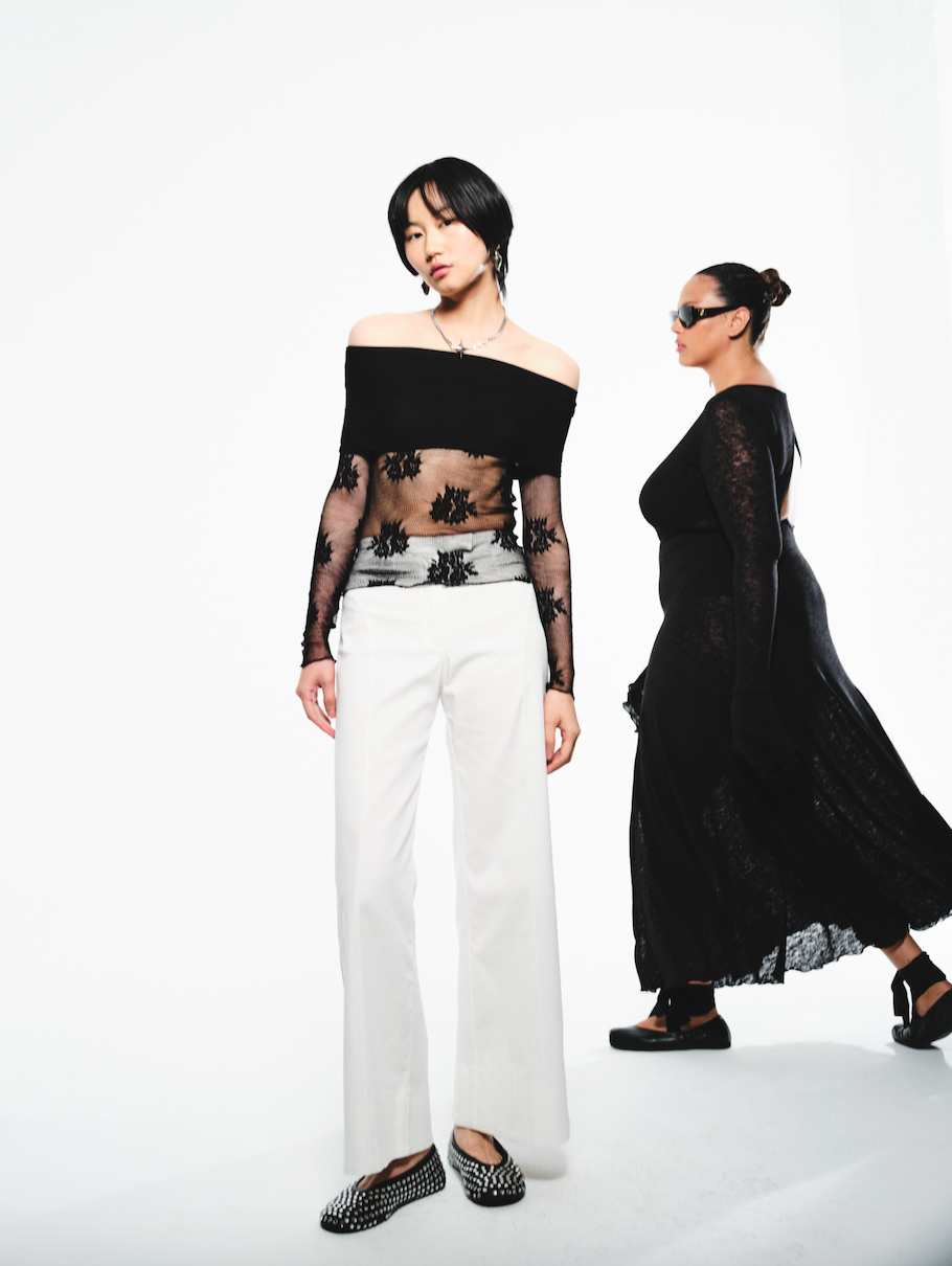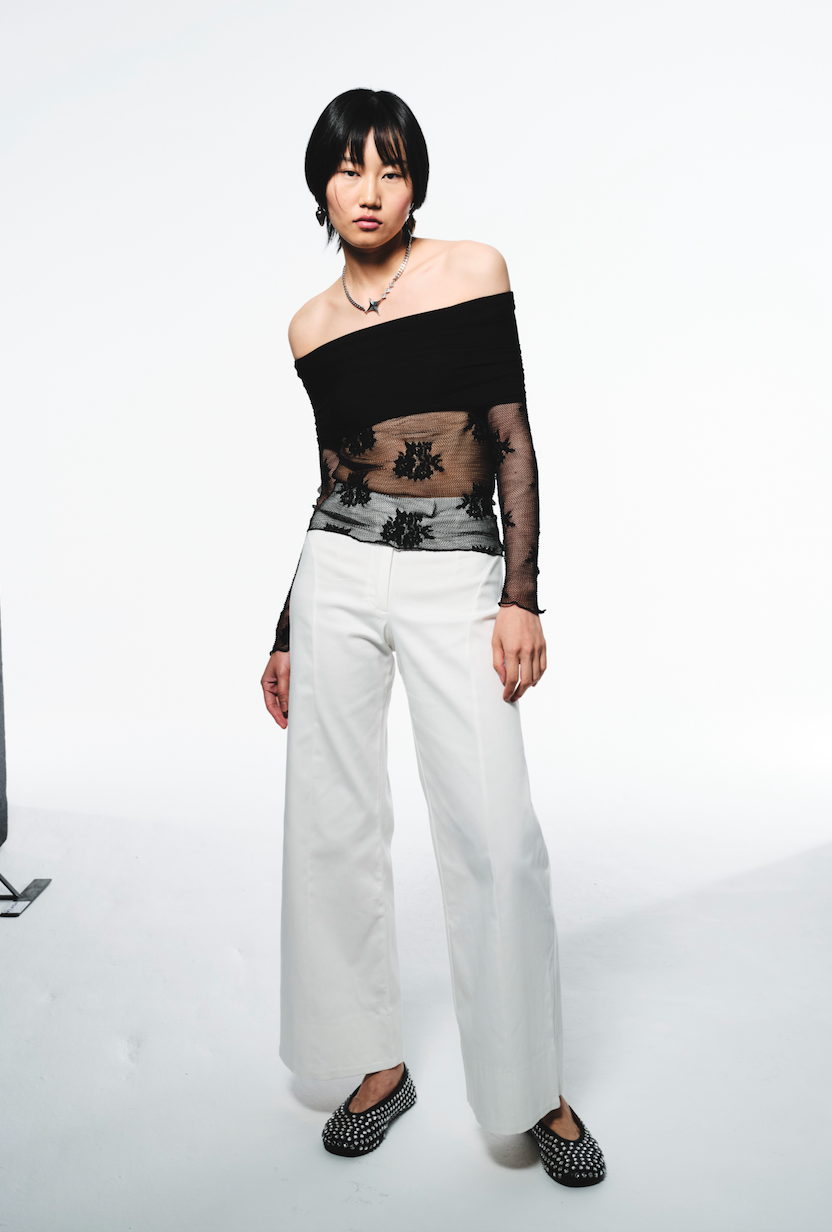 Introducing the Lily Top, a lace piece with delicate floral detail and a fold-over mesh feature. The unique fold-over section can be worn as a hood, adding versatility to your look. Perfect for date night, it adds a touch of edge to any outfit.
