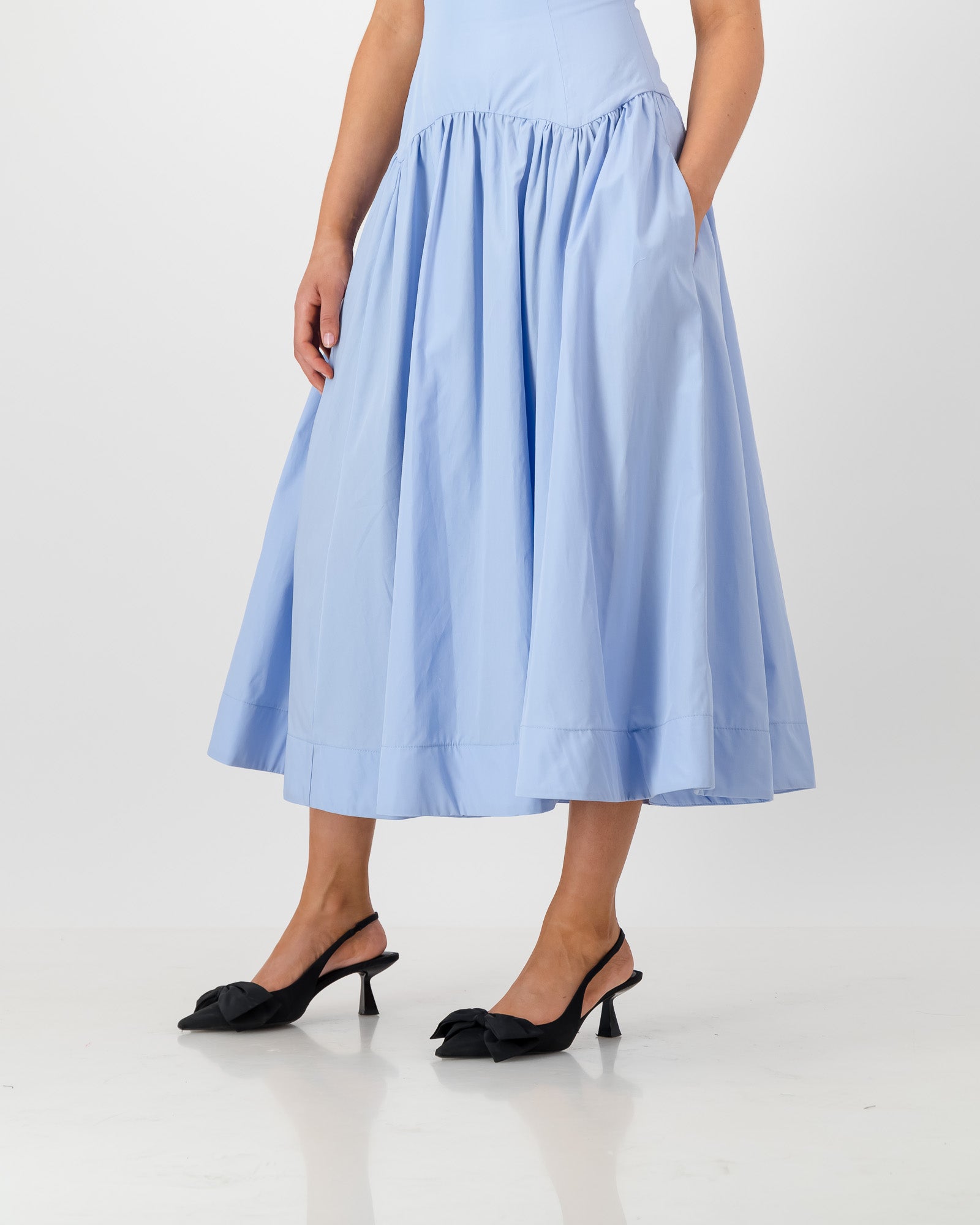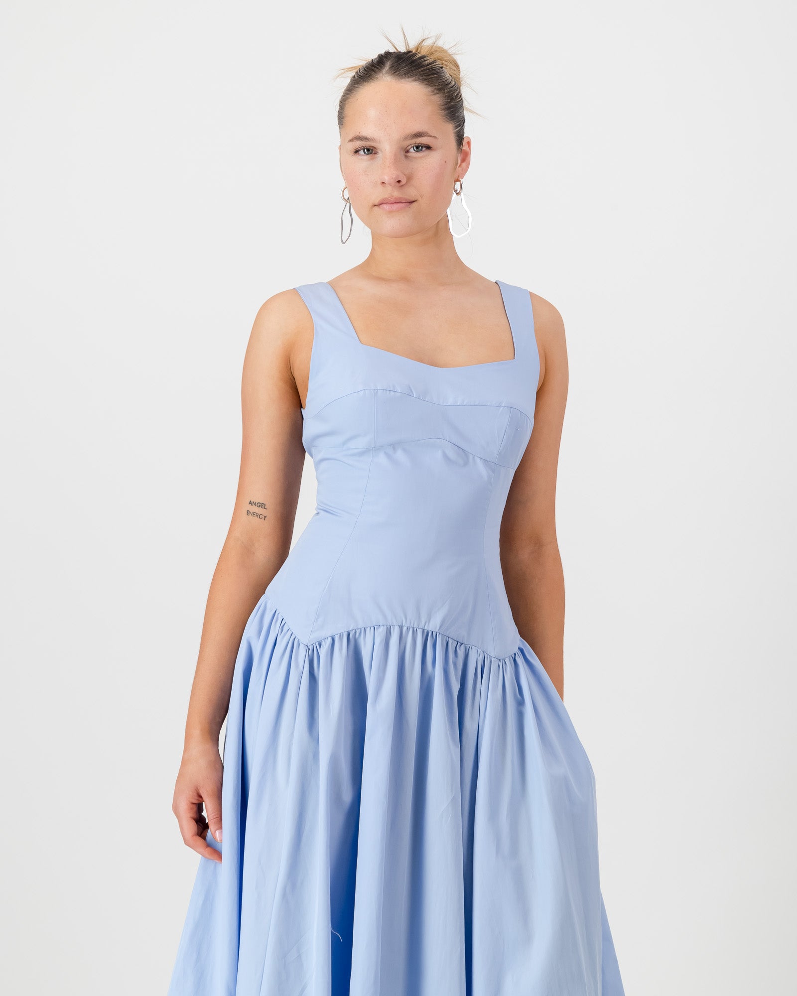 The Gaia Midi Dress combines elegance and structure for a show-stopping look. Featuring a corset bodice with a paneled bustier and distinct 4-point detailing, this dress is designed to accentuate your shape. The gauged skirt falls gracefully to a midi length, while the wide hem adds movement and flow with every step. The low back brings a sultry touch, complemented by a discreet invisible YKK zip at the center back for a seamless finish. Whether you're dressing for a special occasion or looking to make a statement, the Gaia Midi Dress offers a perfect blend of sophistication and modern edge.