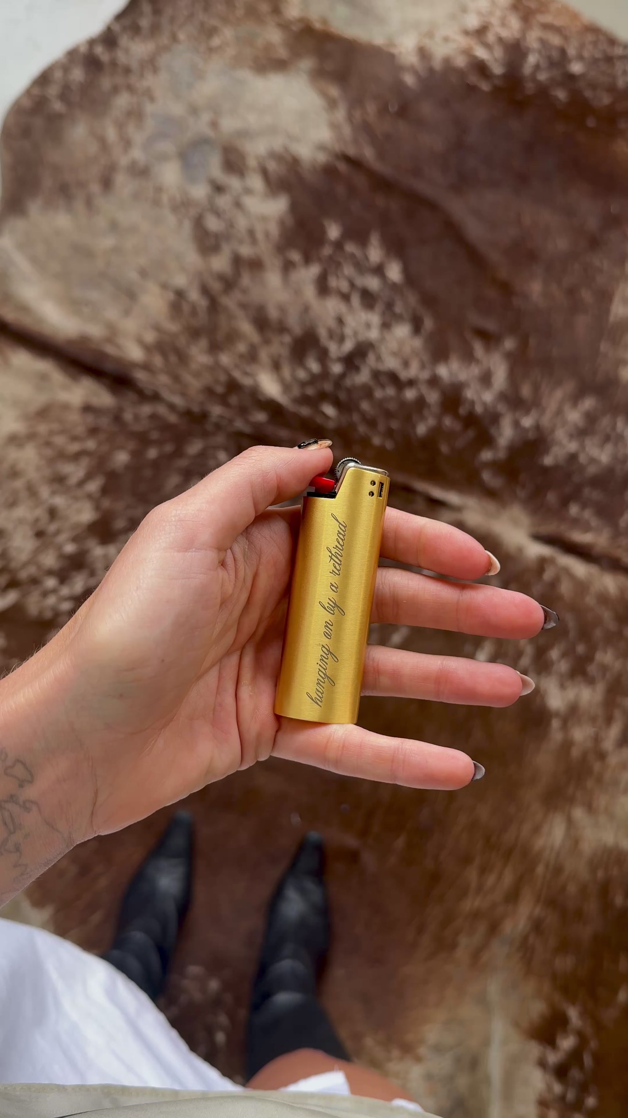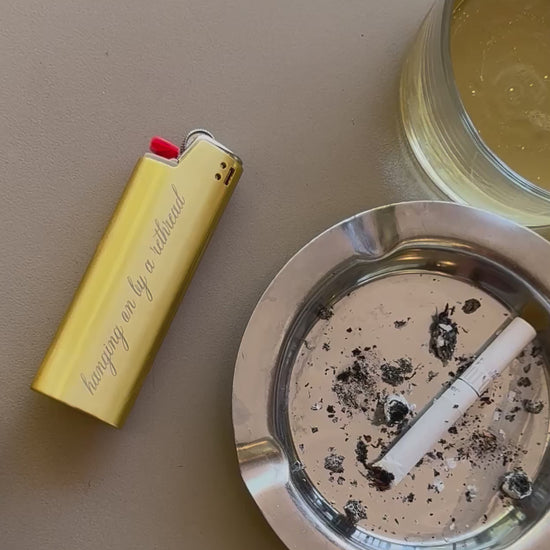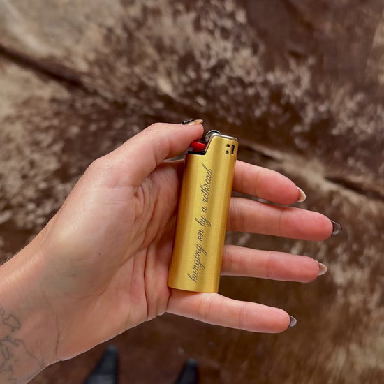 'Hanging on by a Rethread' Lighter Cover - Gold
