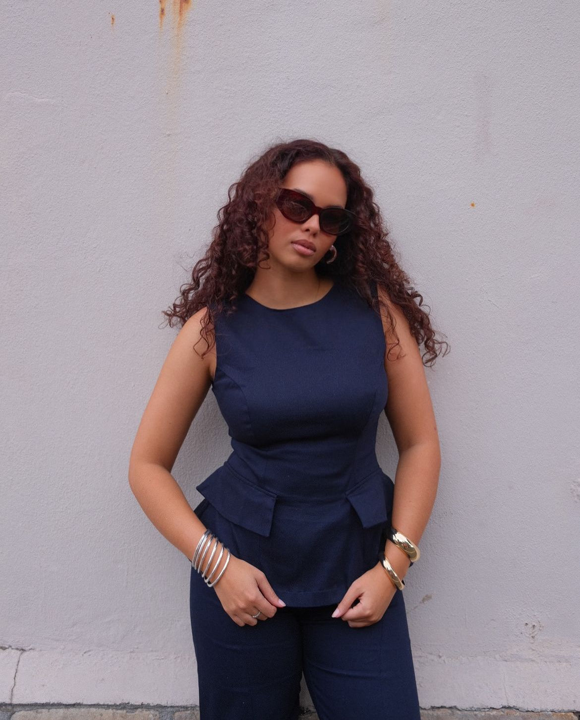Introducing our Kate Top, a chic corset-style piece inspired by the iconic 90s suit look seen on Kate Moss. With a jewel neckline, faux suit-style pockets, and sculpted panels for a flattering silhouette, it exudes sophistication. Finished with a zip closure at the back, it's the perfect blend of classic and contemporary. Pair it with our Kate Trousers for a full corporate core set moment.